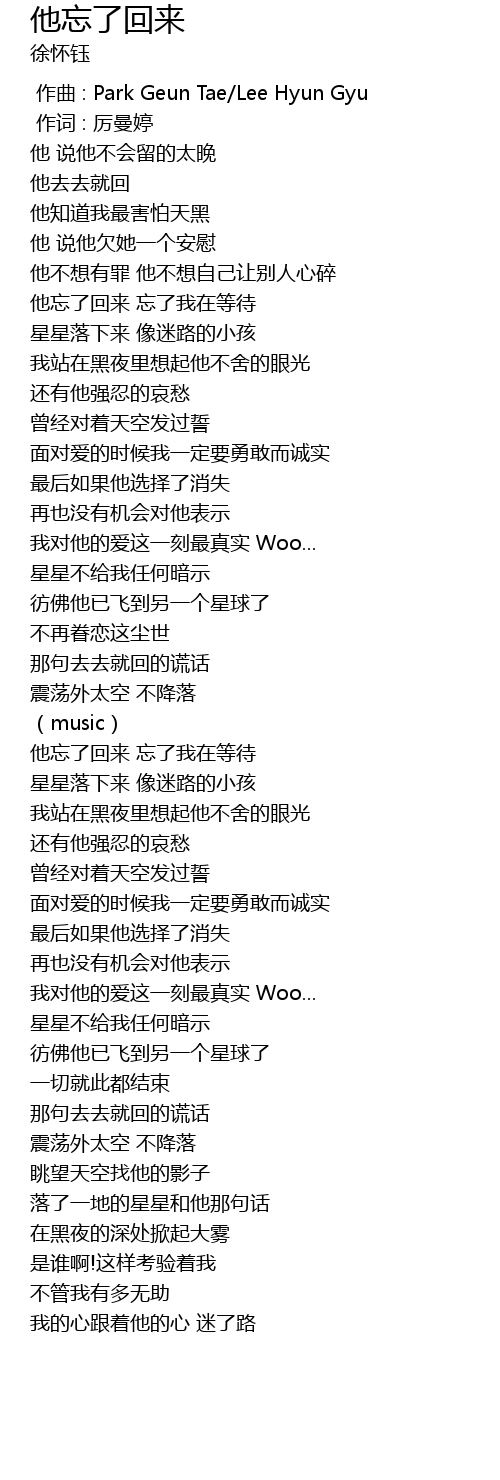 | [02:31.00] | 他忘了回来 忘了我在等待 |