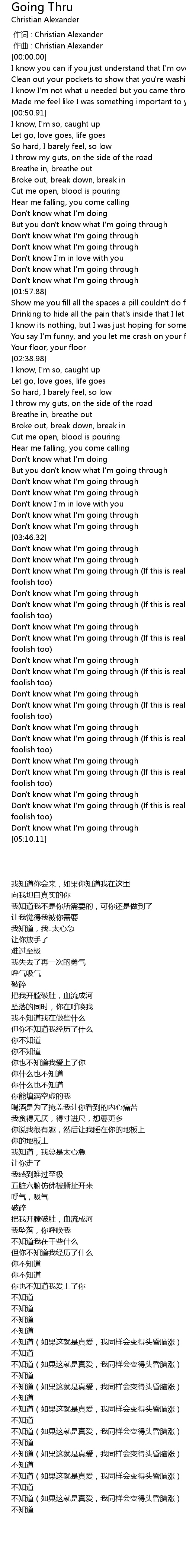| [04:46.71] | Don't know what I'm going through |