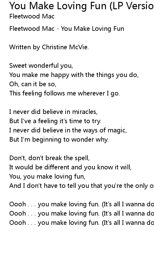 Oooh . . . you make loving fun. (It's all I wanna do.)