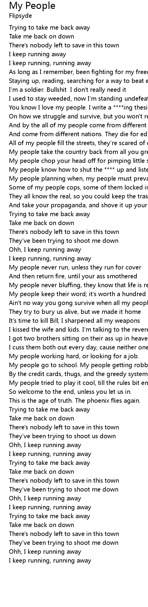 Ain't no way you gong survive when all my people strong |