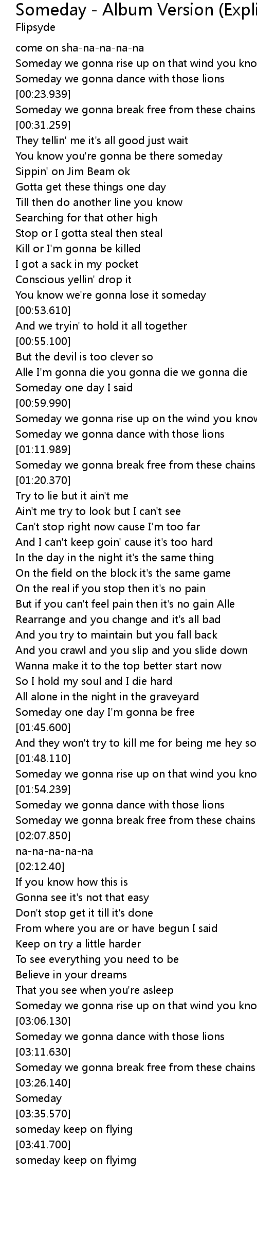 | [01:45.610] | And they won' t try to kill me for being me hey someday |