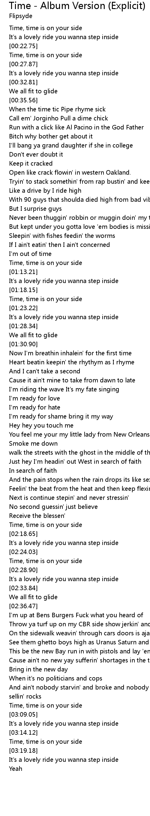Time, time is on your side |