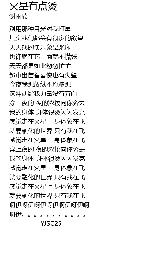 | [01:35.93] | 我的身体 身体很烫闪闪发亮 |