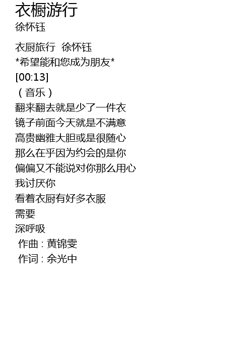 | [00:00] | 衣厨旅行 徐怀钰 |
