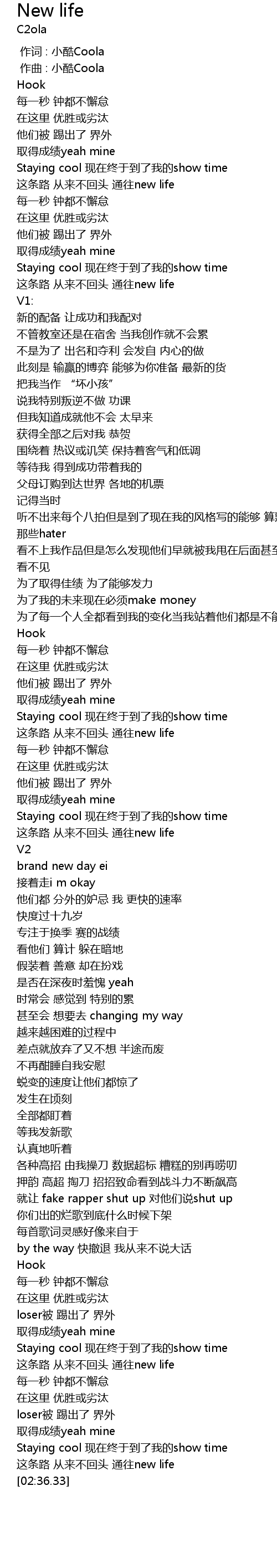 | [02:33.16] | 这条路 从来不回头 通往new life |