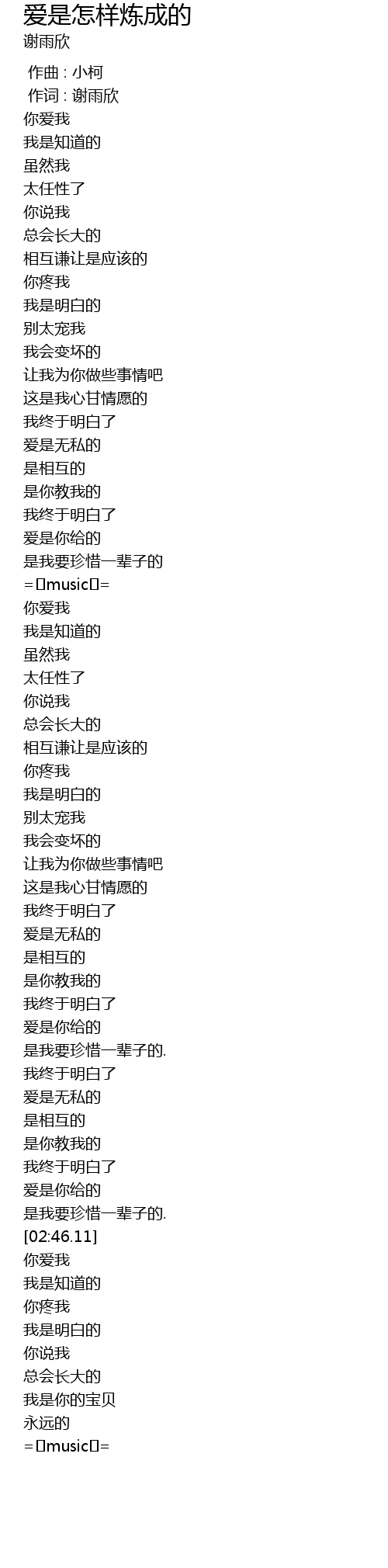 | [00:01.00] | zuò cí : xiè yǔ xīn |