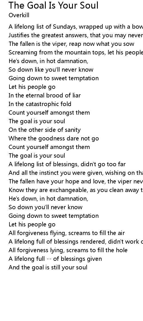 | And the goal is still your soul |