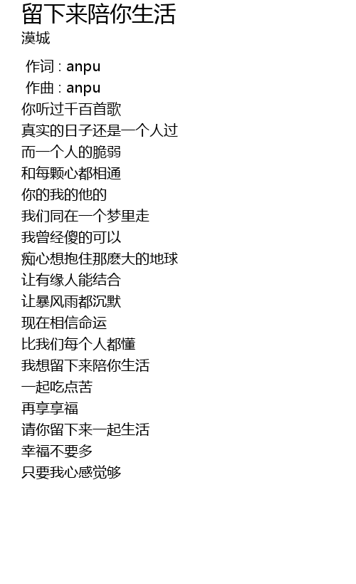 | [01:39.853] | wo xiang liu xia lai pei ni sheng huo |