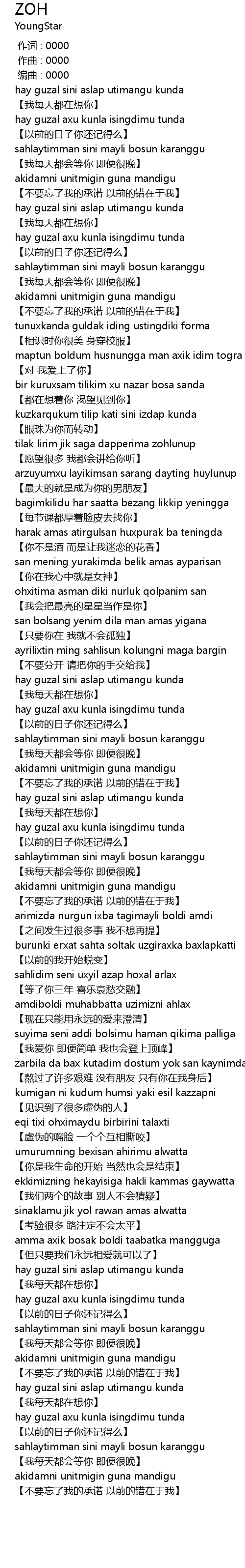 | [00:30.697] | hay guzal axu kunla isingdimu tunda |
