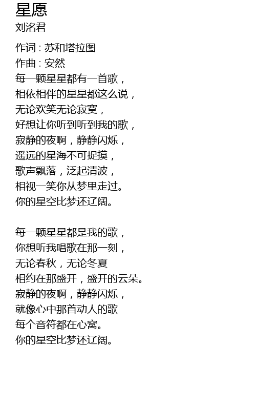 | měi yī kē xīng xīng dōu yǒu yī shǒu gē, | |