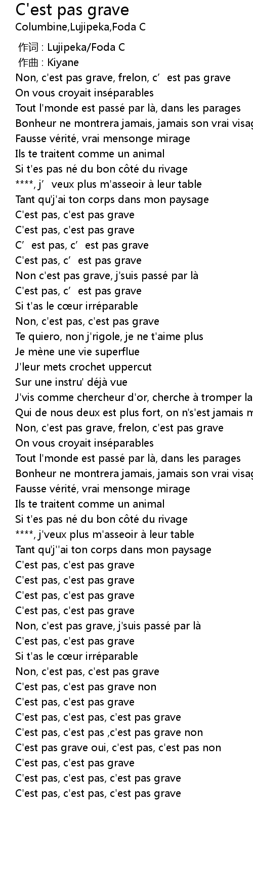 | [02:24.45] | C' est pas, c' est pas, c' est pas grave |