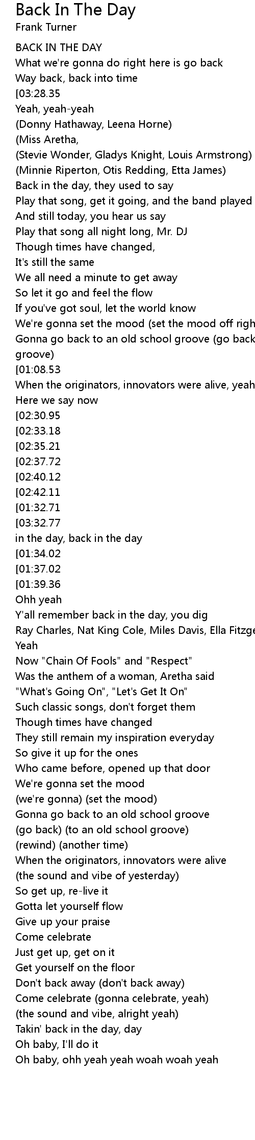 Takin' back in the day, day |