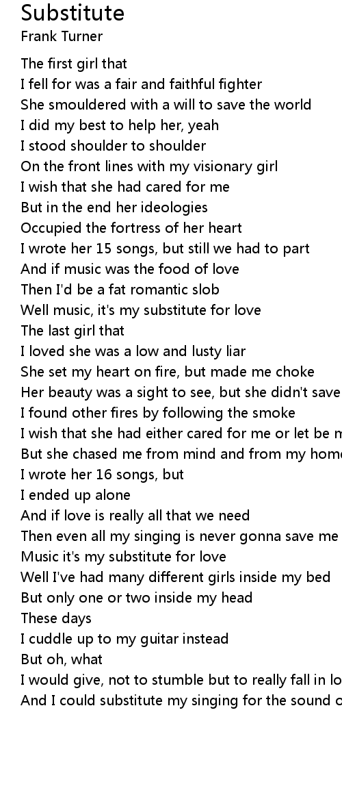 Well music, it's my substitute for love |