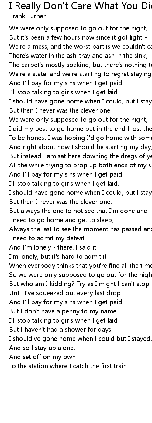 I Really Don't Care What You Did On Your Gap Year Lyrics