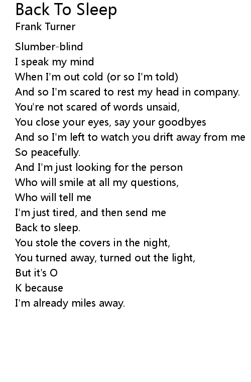 Back To Sleep Lyrics
