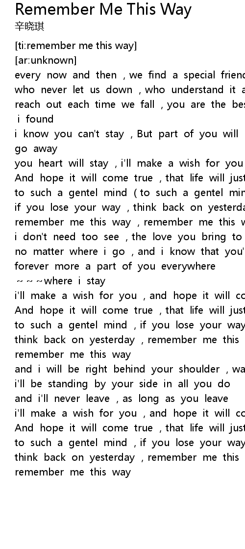 | [01:32.390] | remember me this way , remember me this way |