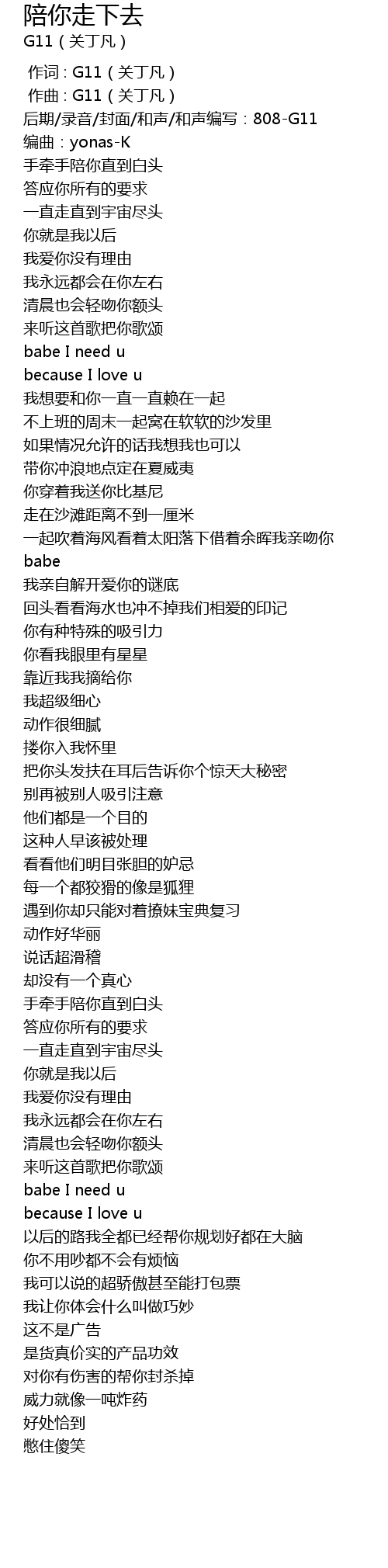 | [00:00.000] | 作词 : G11(关丁凡) |