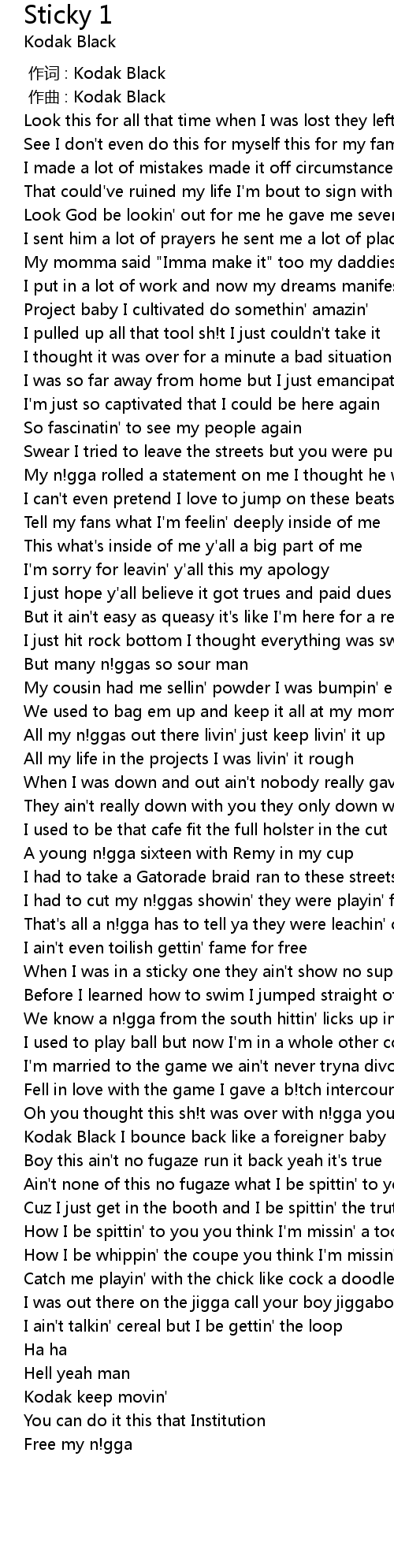 | [02:53.77] | Kodak Black I bounce back like a foreigner baby |