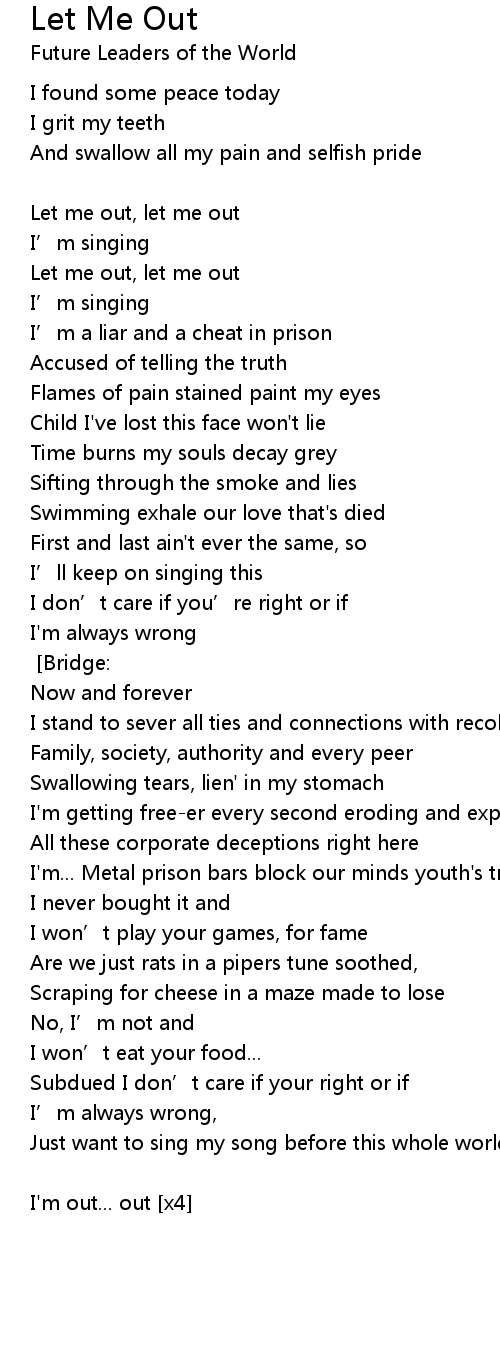 | Just want to sing my song before this whole world Chorus X2 Bridge: | |
