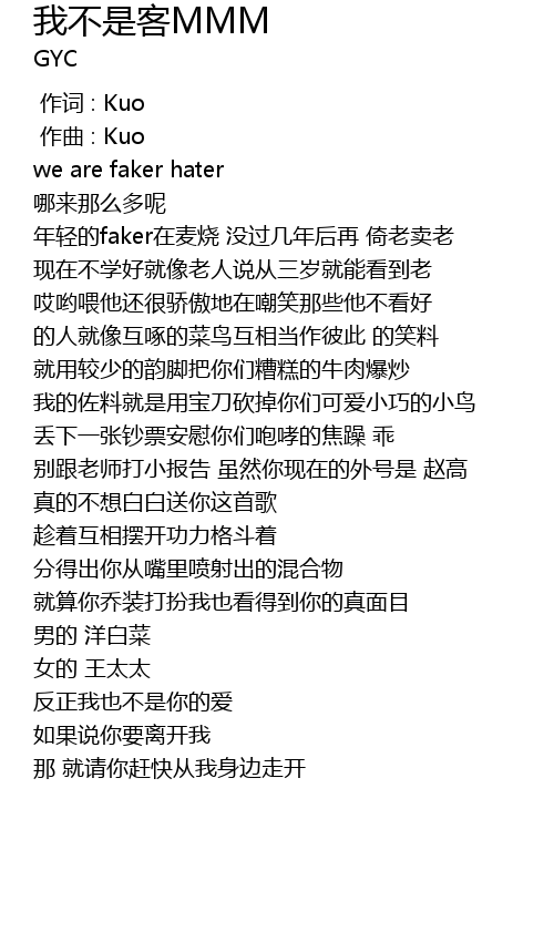 | [00:13.138] | 年轻的faker在麦烧 没过几年后再 倚老卖老 |