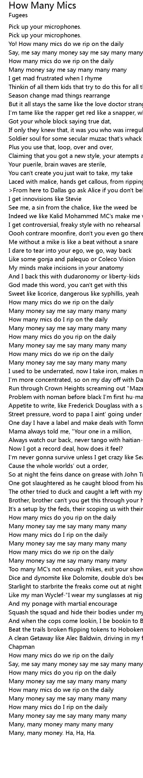 Too many MC's not enough mikes, exit your show like I exit the turnpike