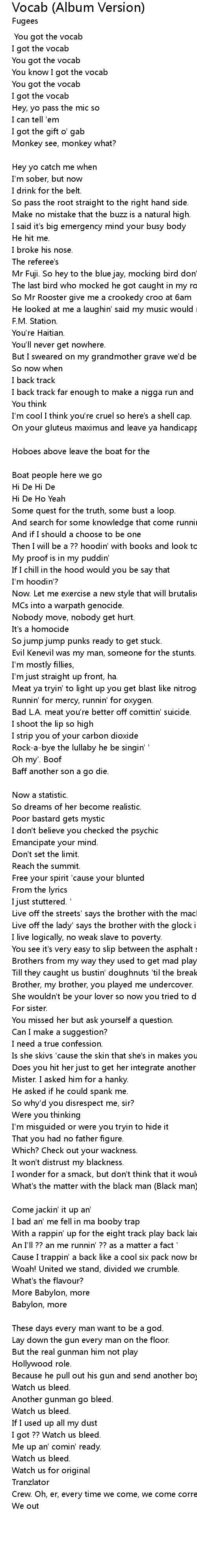 [Chorus] You got the vocab |