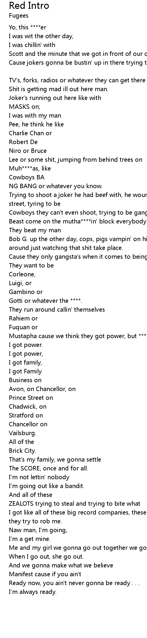 | Bob G. up the other day, cops, pigs vampin' on him, everybody just standin' around just watching that shit take place. | |