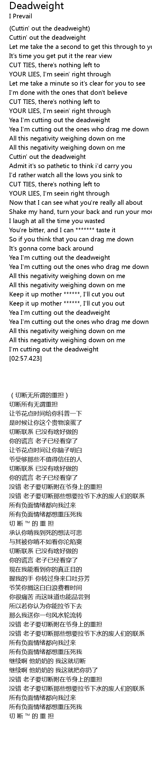 | [00:00.000] | (Cuttin' out the deadweight) |