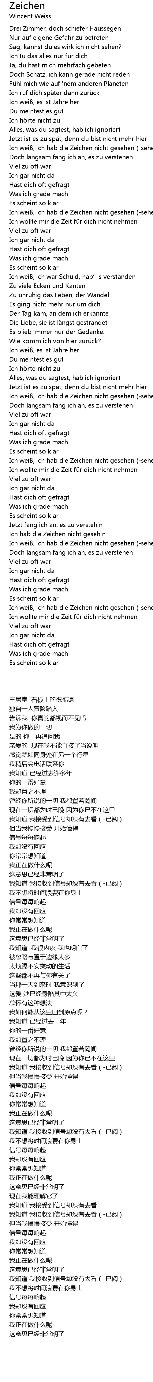 | [00:56.77] | Ich weiß, ich hab die Zeichen nicht gesehen (-sehen) |