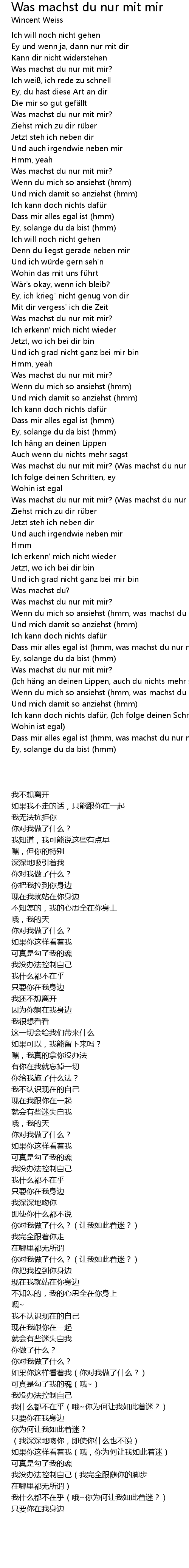 | [01:49.12] | Was machst du nur mit mir? (Was machst du nur mit mir?) |