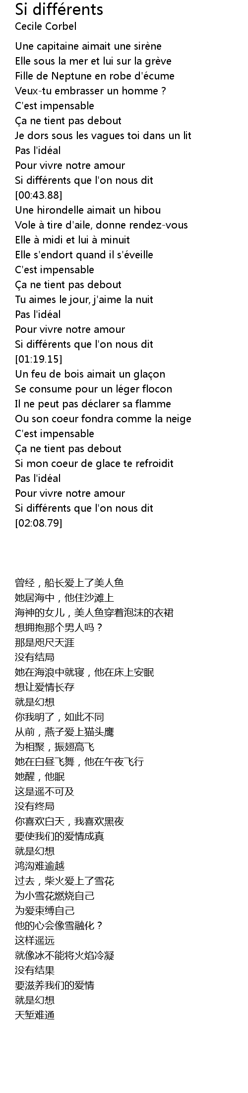 | [00:39.79] | Si diffe rents que l' on nous dit |