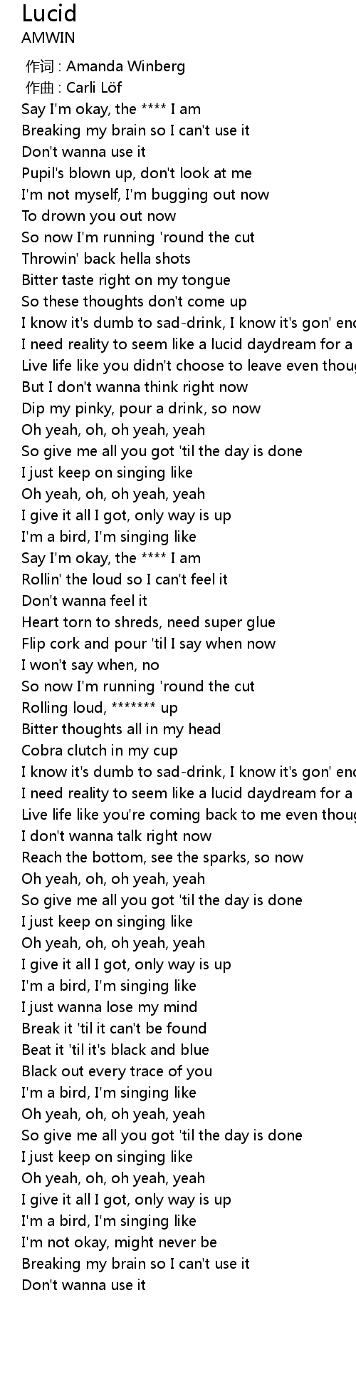 | [01:43.75] | I need reality to seem like a lucid daydream for a minute |