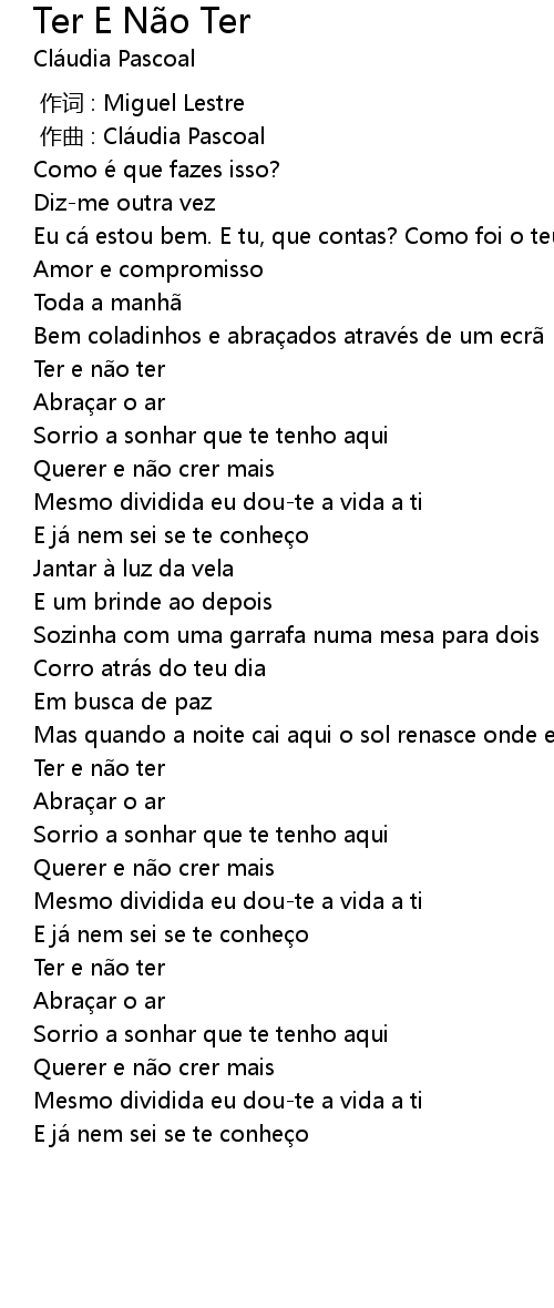 | [00:01.000] | 作曲 : Cláudia Pascoal |