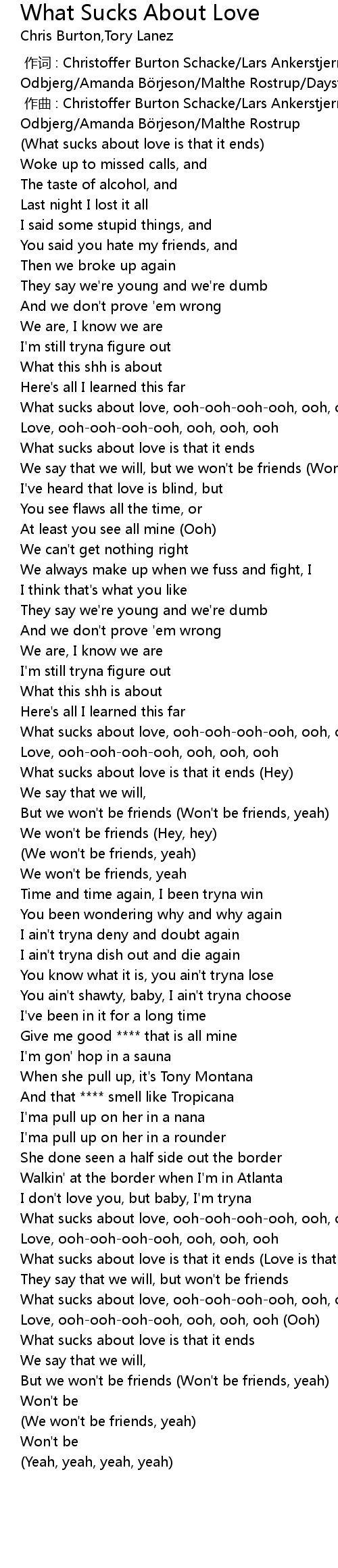 | [01:31.41] | What sucks about love, ooh-ooh-ooh-ooh, ooh, ooh, ooh |