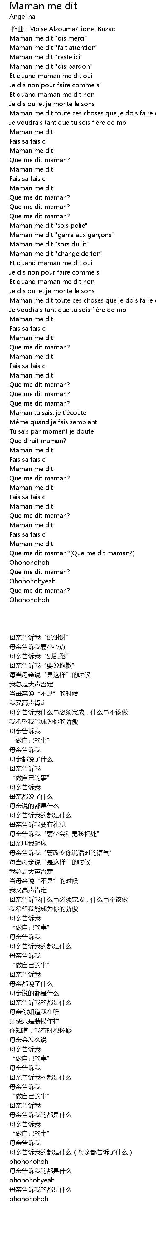 | [02:25.36] | Que me dit maman? Que me dit maman? |