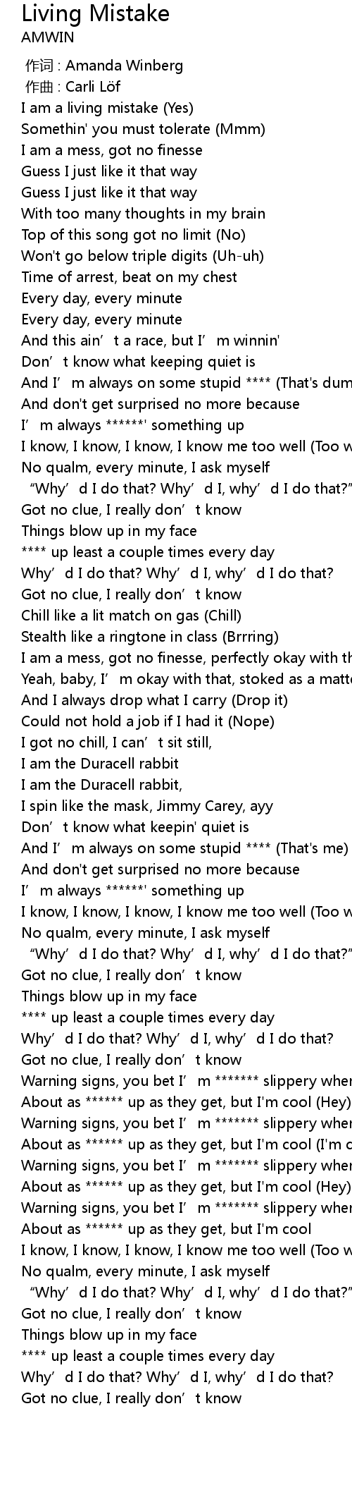 | [00:06.28] | I am a living mistake (Yes) |