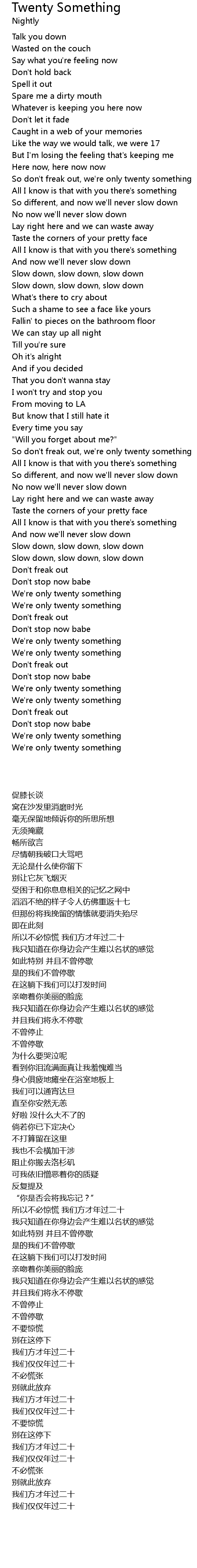 So don't freak out, we're only twenty something |