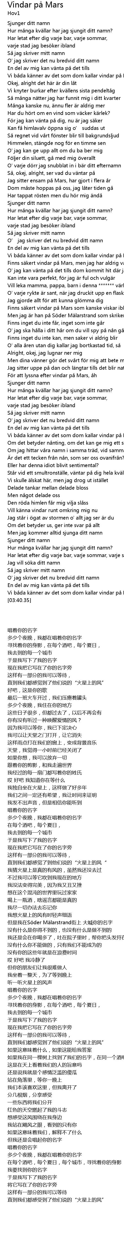 | [00:28.72] | Vi båda känner av det som dom kallar vindar på Mars |