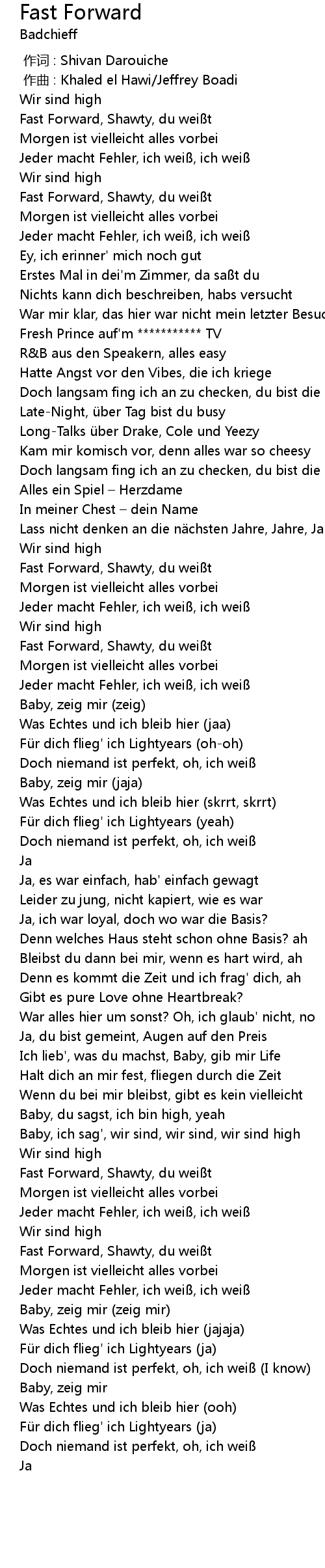 | [02:21.38] | Fast Forward, Shawty, du weißt |