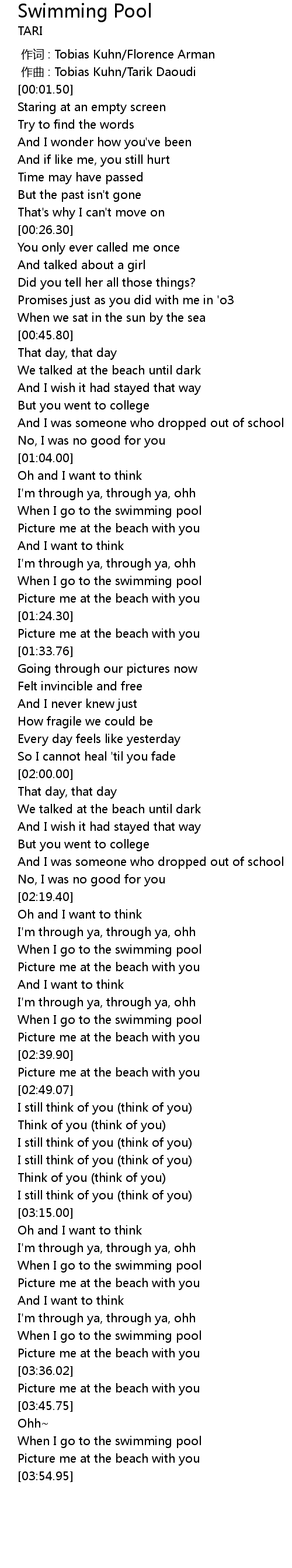 | [02:35.00] | When I go to the swimming pool |