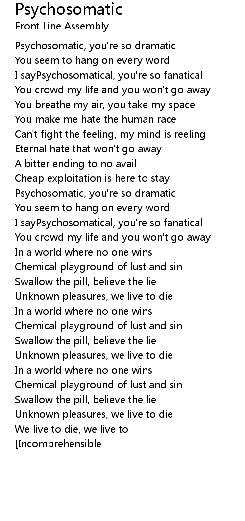Psychosomatic, you're so dramatic |