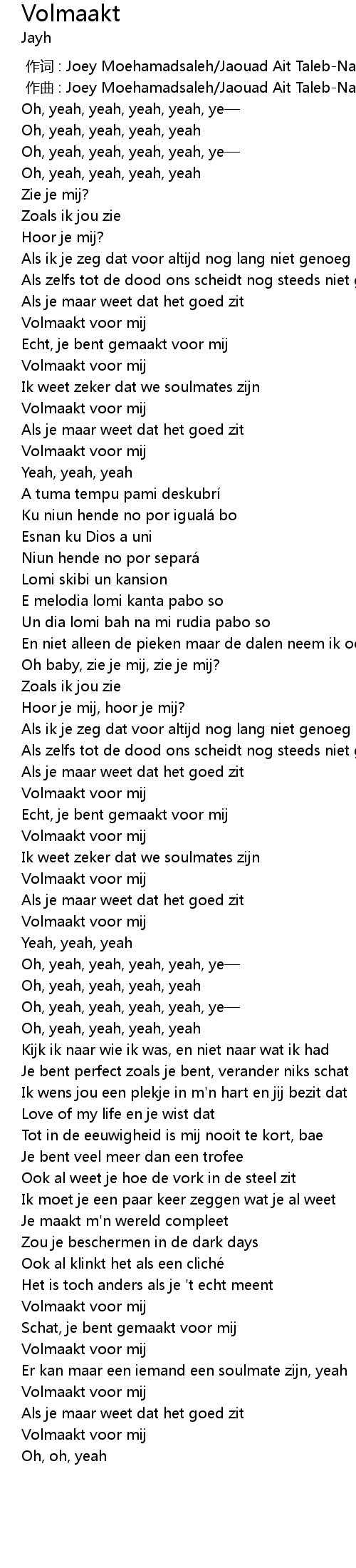 | [02:32.43] | Tot in de eeuwigheid is mij nooit te kort, bae |