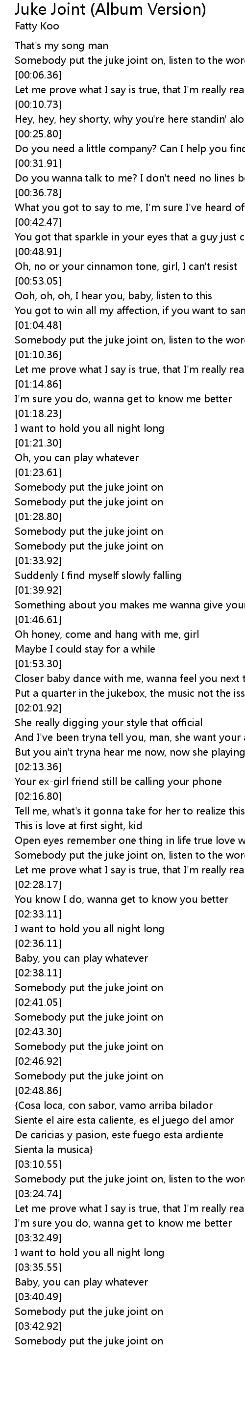 Somebody put the juke joint on, listen to the words of the song |