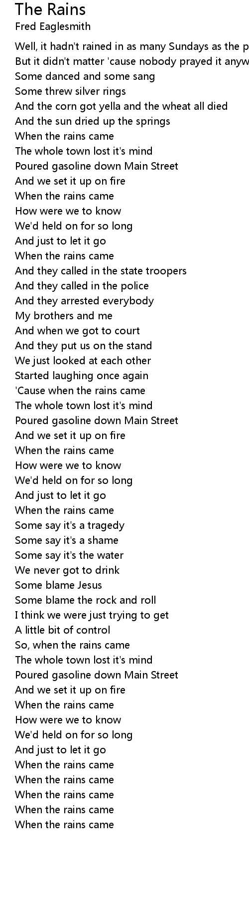 'Cause when the rains came |