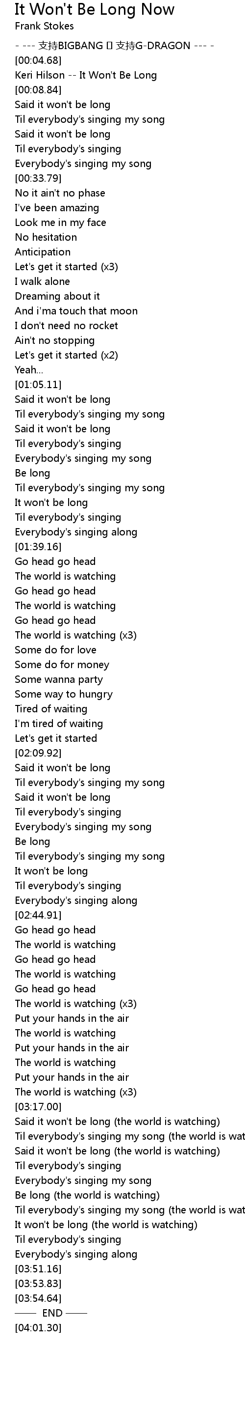 | [00:06.68] | Keri Hilson It Won' t Be Long |