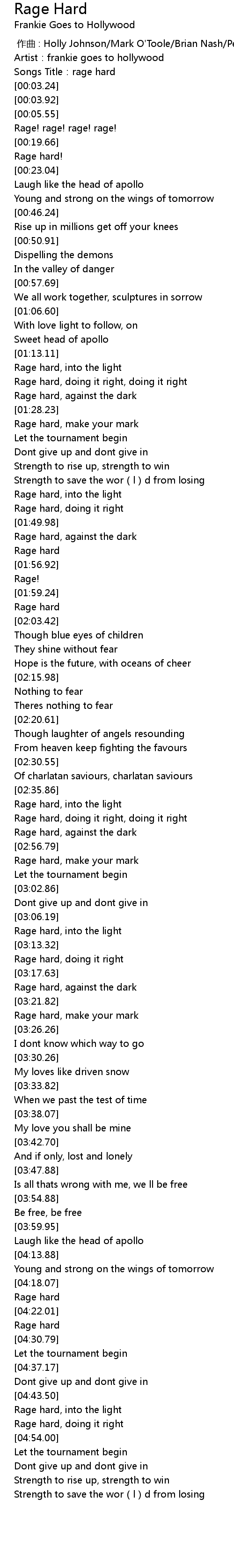 | [04:30.01] | Rage hard |