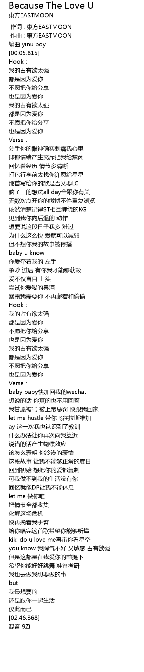 | [01:36.640] | dōu shì yīn wèi ài nǐ |