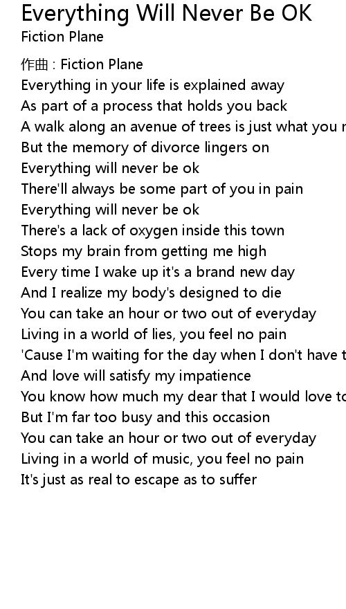 | Song | Everything Will Never Be OK |