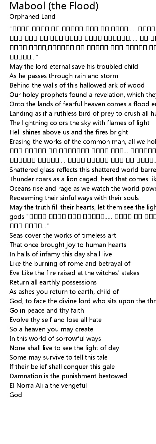 | Song | Mabool (the Flood) |