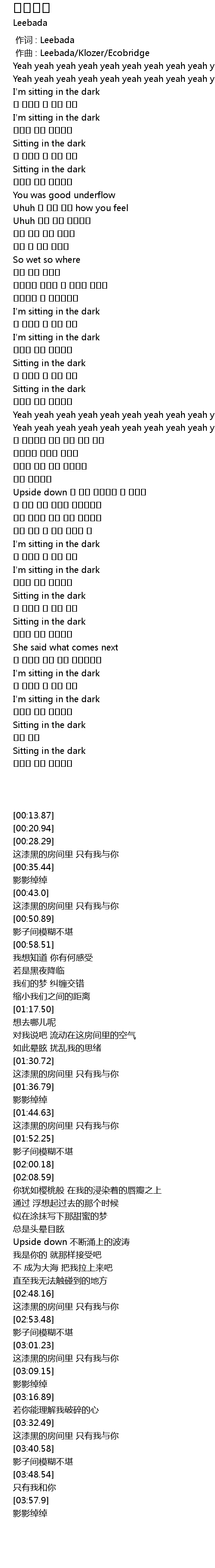 | [00:20.94] | Yeah yeah yeah yeah yeah yeah yeah yeah yeah yeah yeah |